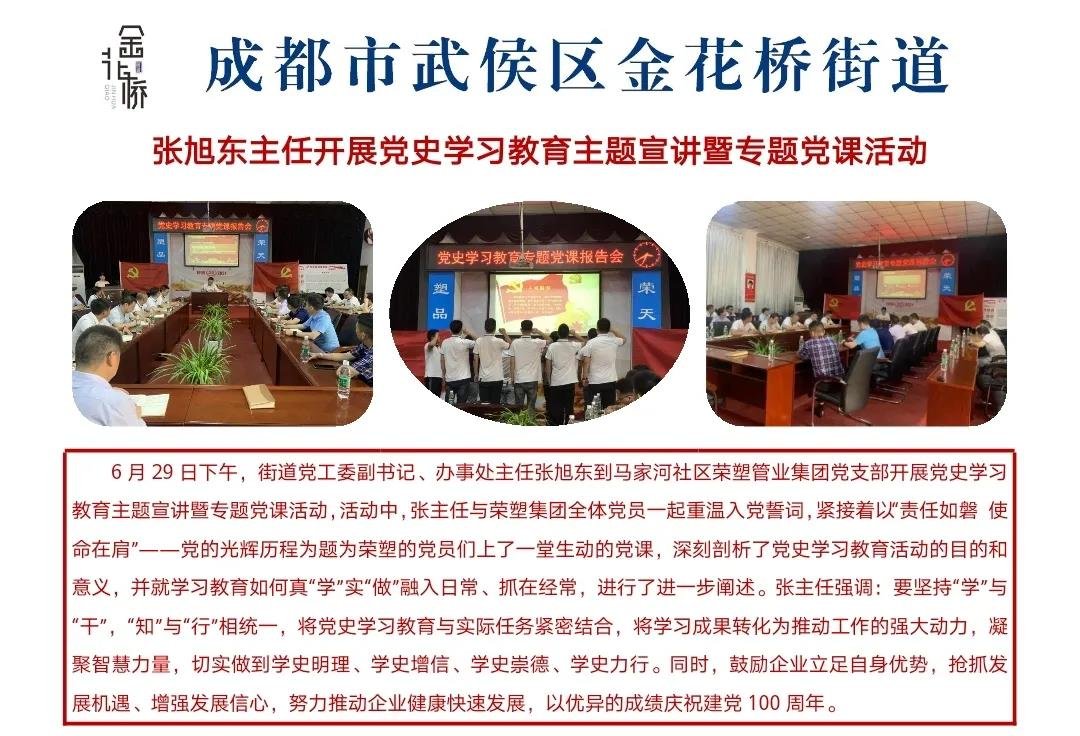 6月29日,成都市武侯区金花桥街道办张旭东主任在荣塑管业集团开展党史学习教育主题暨专题党课活动。